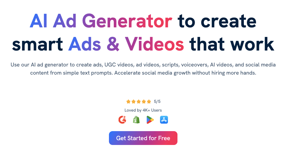 Creates UGC-style ads with avatars + voiceovers