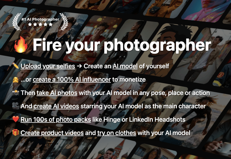 Photo AI lets you upload selfies and create a hyper-realistic AI model of yourself.