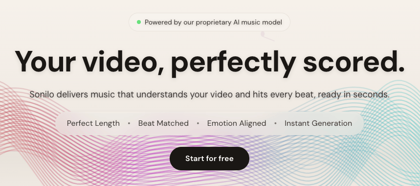 You upload a clip, and Sonilo analyzes the visuals, pacing, and mood, then creates a track that matches the energy and timing. No manual syncing or editing required.